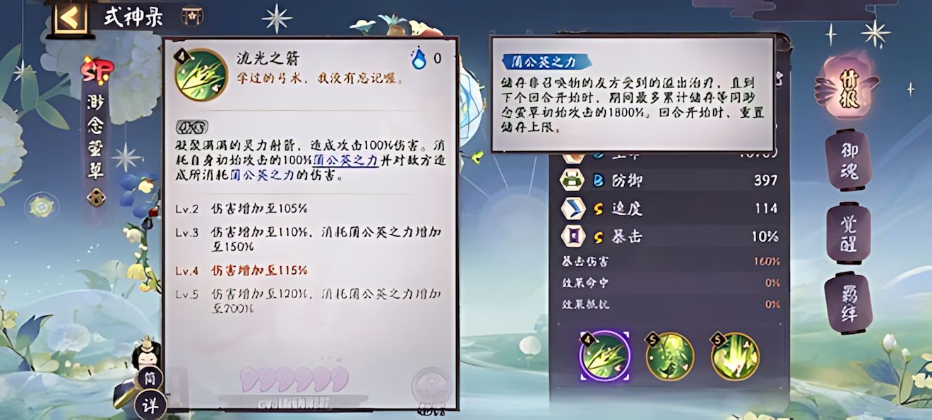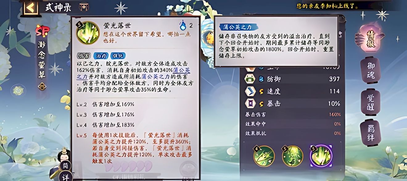 4、二技能续航效果突出,移除种子后会治疗萤草攻击力三十五百分比,受间接伤害会将等量伤害转为蒲公英之力,治疗效果翻倍且不会消耗种子。
