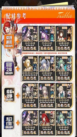 1、配队分四种场景选择,常规阵容搭大黑塔翡翠加藿藿灵砂,忘却之庭搭配阿格莱雅星期日和藿藿,虚构叙事选景元记忆主砂金,末日幻影用大黑塔银枝藿藿。
