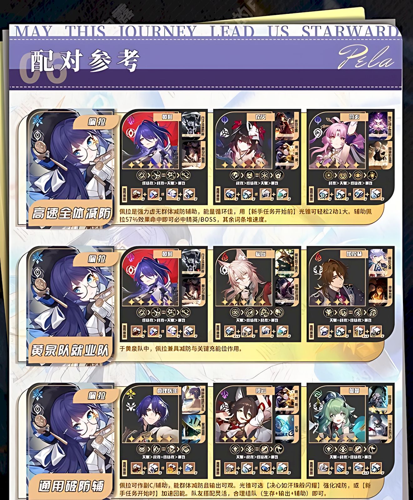 1、配队有明确方向,高速全体减伤队可选佩拉加黄泉加花火加符玄,黄泉就业队搭配椒丘加拉赫,通用破防辅可配真理医生停云藿藿。