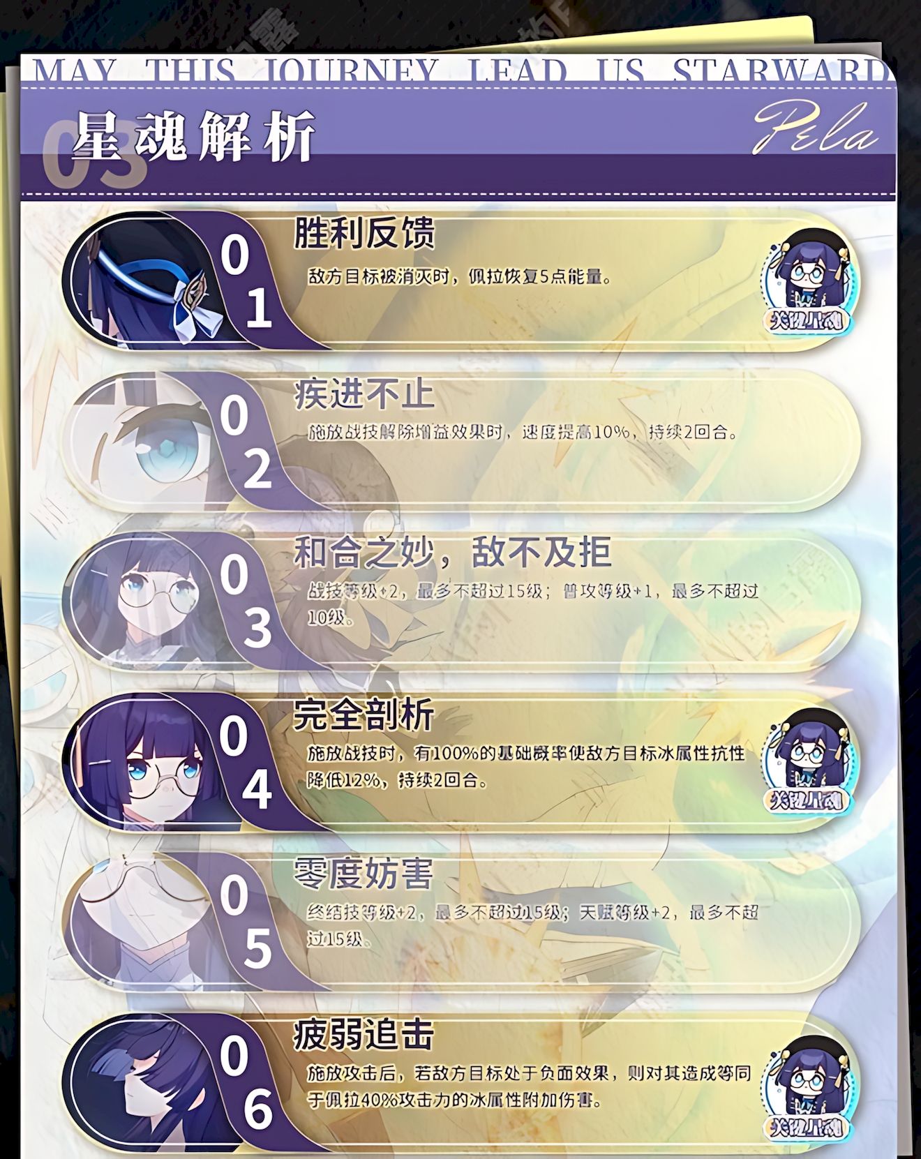崩坏星穹铁道佩拉是强力辅助角色,核心定位为减防拐与功能辅,适配多支输出队伍,配队可搭黄泉真理医生等主流主C,遗器需围绕速度与能量循环选择,光锥有专属与通用两类适配选择,星魂能补强回能与减抗,行迹升级需侧重终结技与天赋。本文将拆解配队参考遗器推荐光锥选择星魂解析及行迹升级,为玩家提供完整培养攻略。