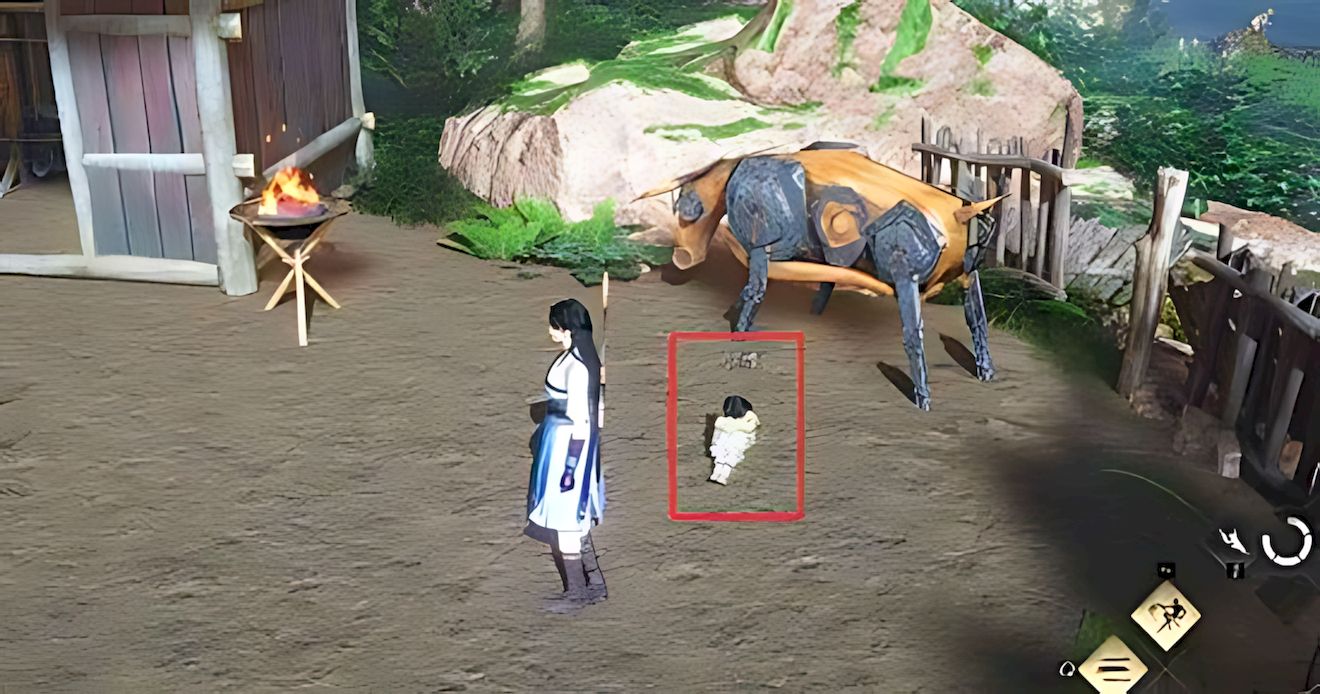 3、将偷取的炊饼赠予小蝶,触发剧情得知其父外出寻牛未归,按提示前往神女湖与渡口之间的岸边调查尸体。