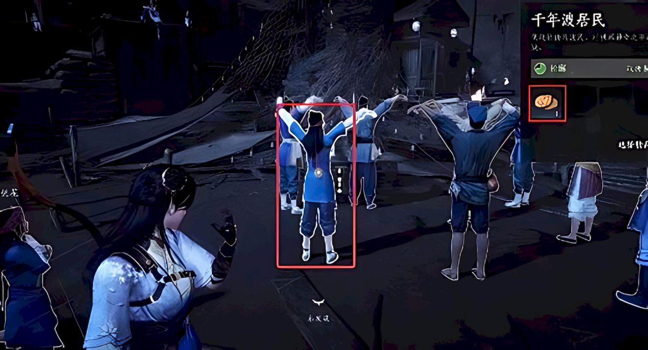 2、抵达神女祭拜处找到蓝衣女子,对其使用摄星拿月偷取献给神女的炊饼,无摄星提示就切换线路或调整时辰至白天再试。