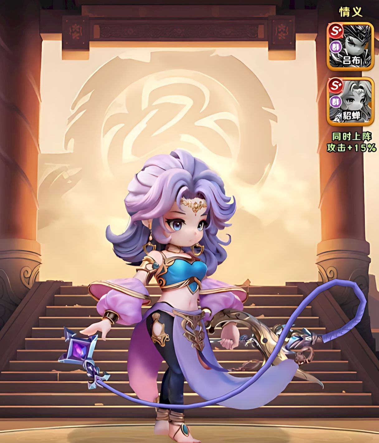 2、阵容搭配灵活,采用三前排三后排模式,前排选貂蝉控场增怒杨戬承伤反伤敖丙护盾加成,后排配孙悟空吕布补爆发,可替换袁绍诸葛亮调整。