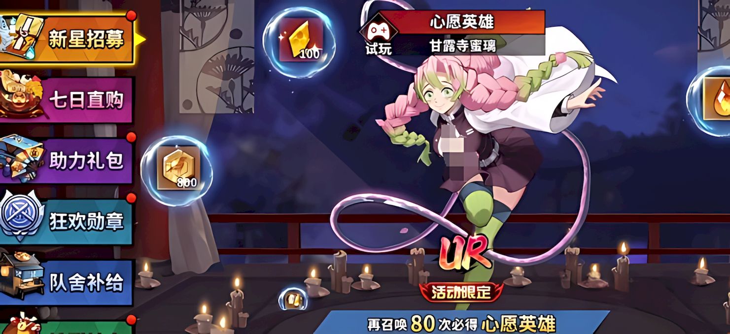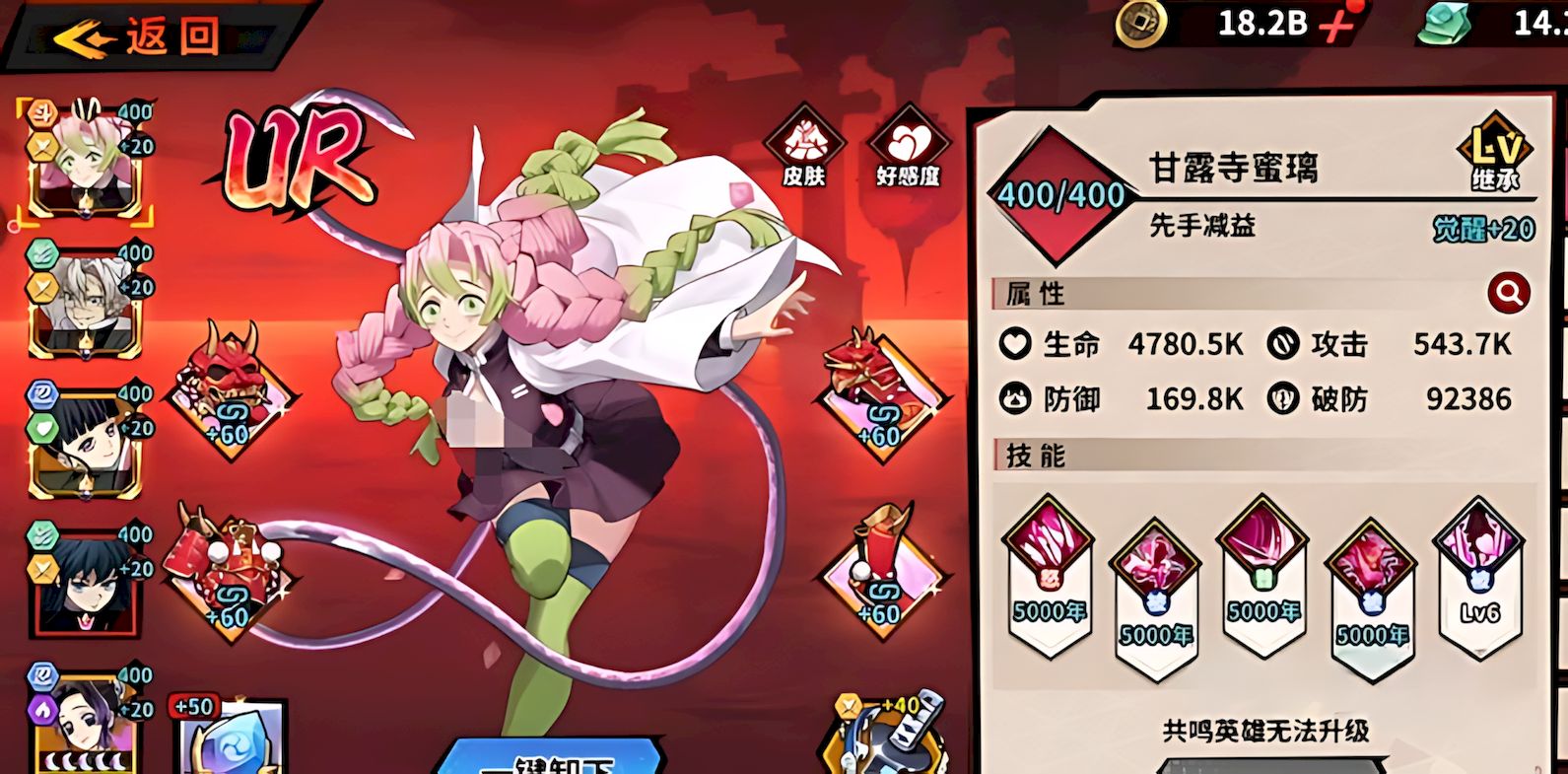 2、阵容构筑需搭配内伤持续伤害角色,水柱是最优选择,技能施加稳定内伤,与蜜璃爆发收割形成闭环,稳步压低敌方血量。