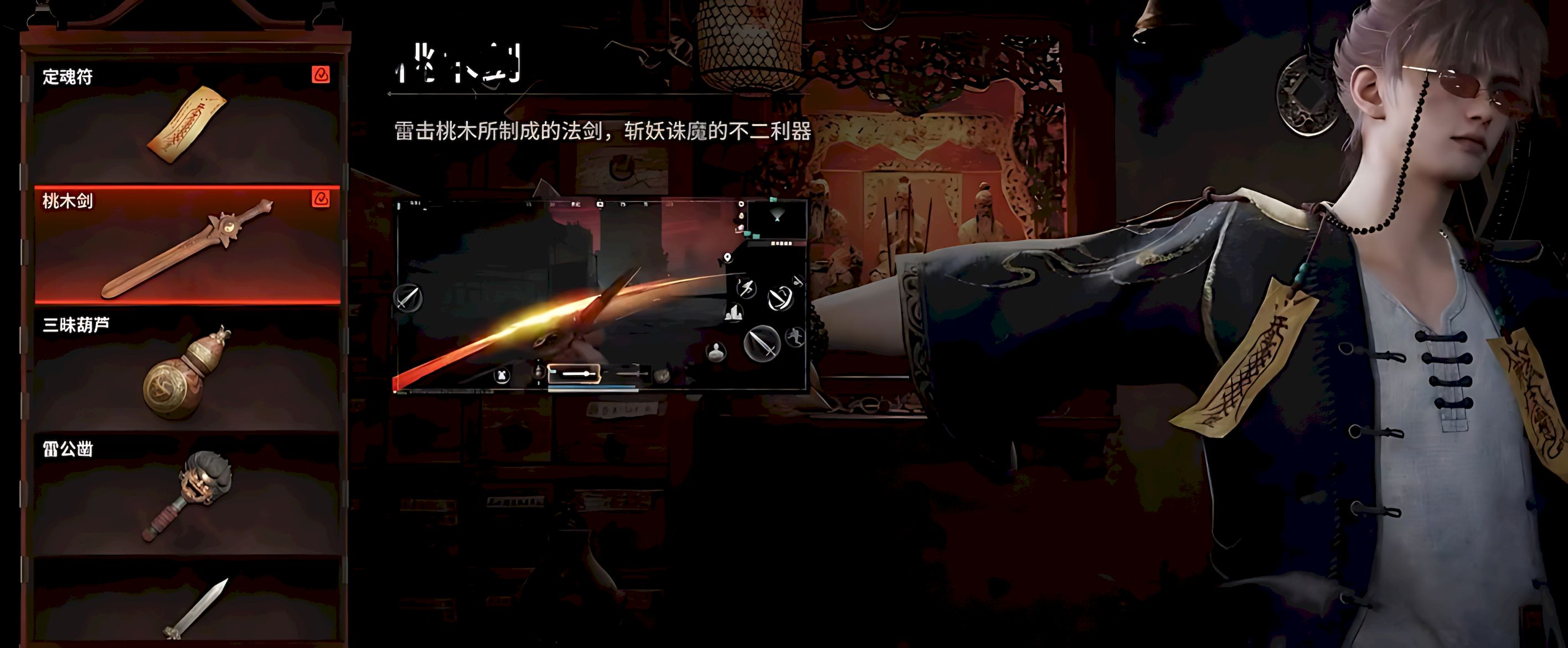 1、开局可从五把克邪武器中选两把搭配,桃木剑近战突刺、三昧葫芦喷火、定魂符中程定身、柳叶飞刀群发、雷公凿雷电攻击各有优势。