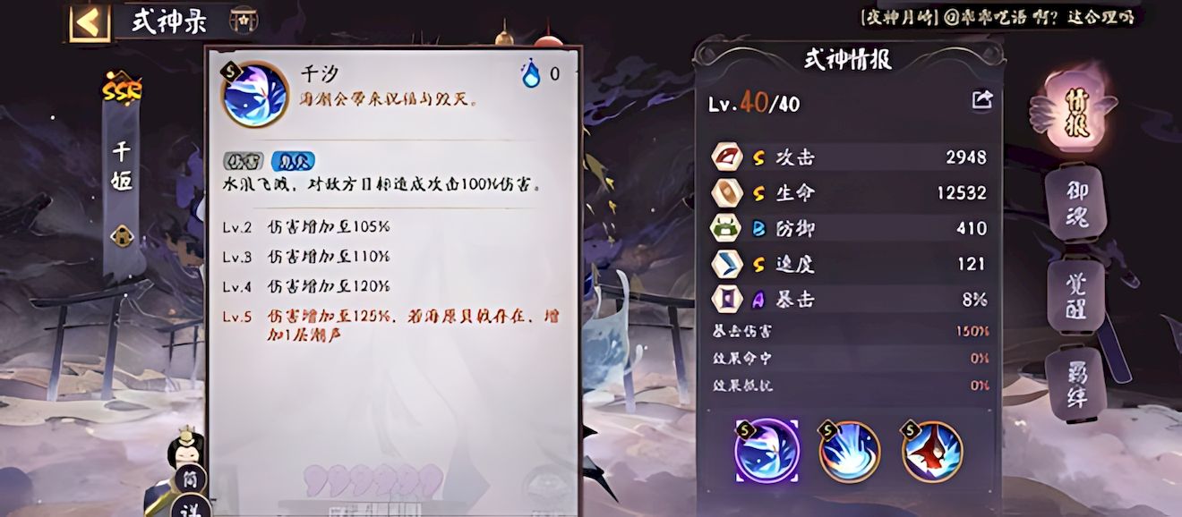 3、三技能可主动召唤海原贝戟,再次释放该技能会回收海原贝戟,同时对敌方全体式神造成范围伤害,覆盖所有在场敌方目标。