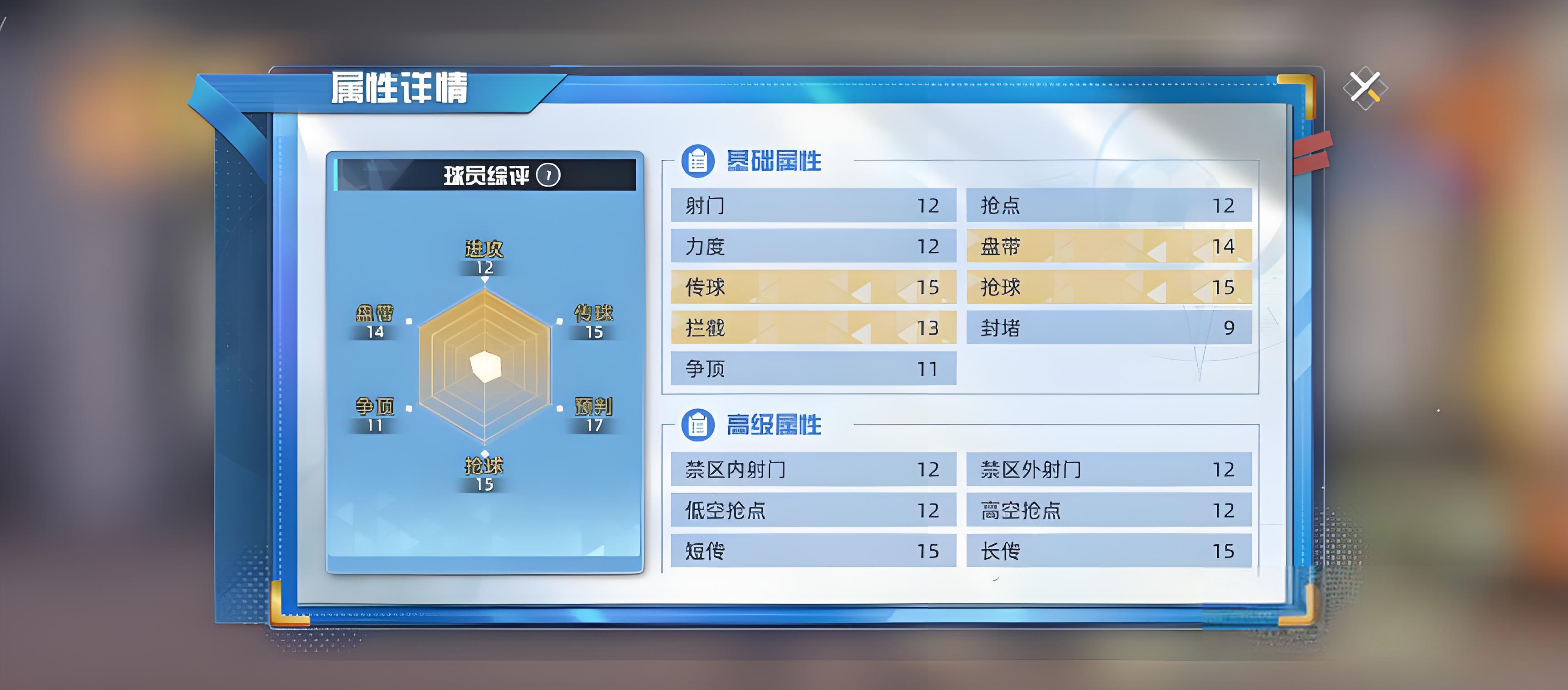 2、存在明显短板争顶能力仅11分封堵9分,高空对抗能力薄弱,需避开相关场景或搭配队友弥补防守不足。