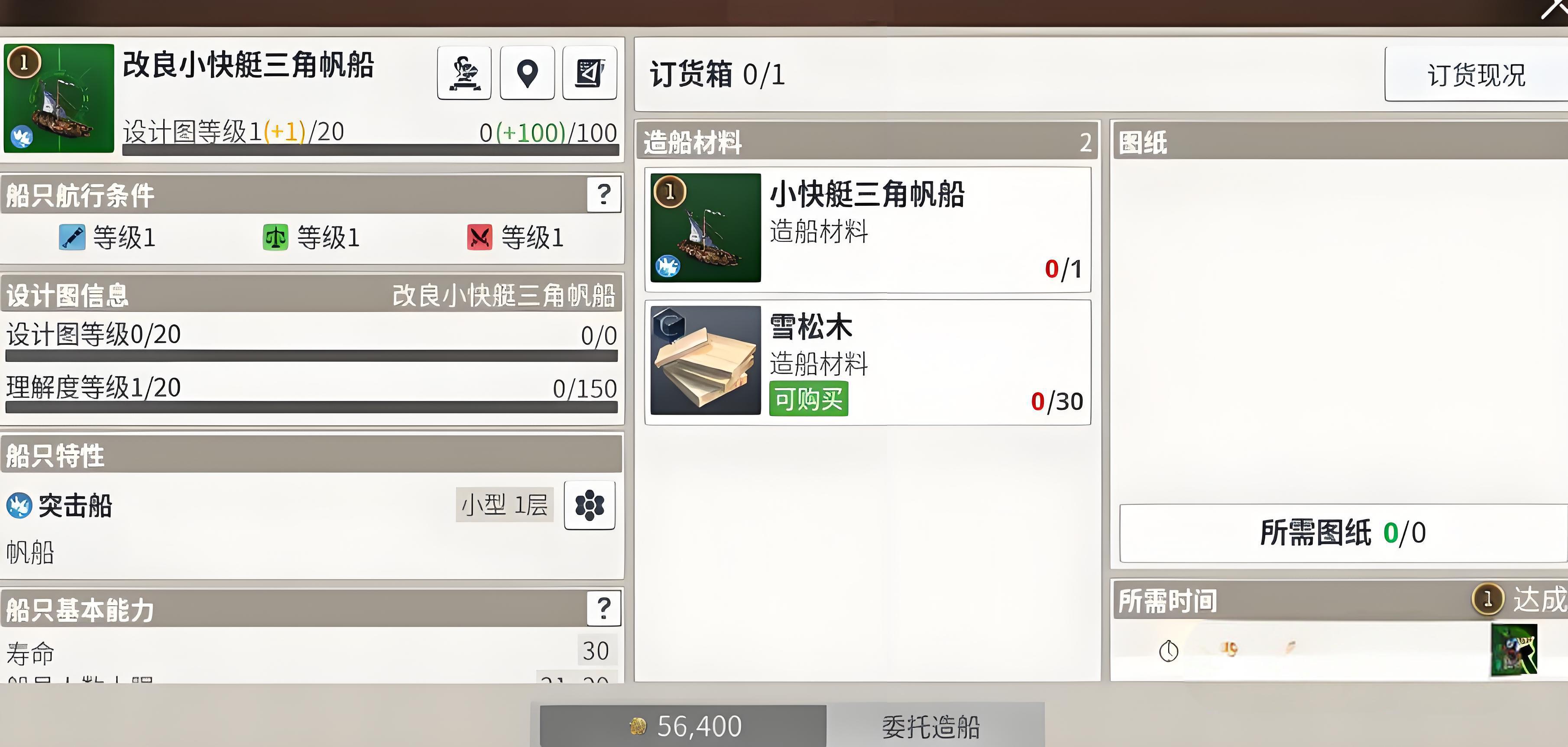 4、材料齐全后启动建造,建造有固定时长,可消耗红钻或加速卷缩短,反复造船提升经验,取消建造不退还资源。