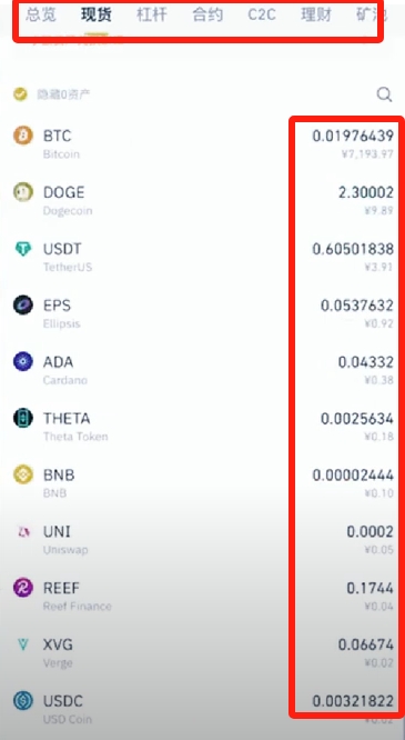 资产页面汇总所有持仓信息,包含现货、杠杆及合约仓位明细。