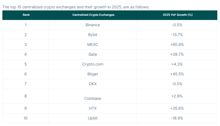 MEXC表现尤为突出,据报年增长率达90%,主要归功于吸引高频交易者和新散户的零费率现货交易策略。