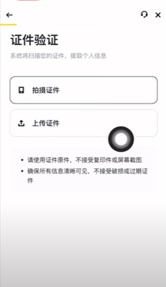 完成身份验证,国内用户可使用有效证 件进行认证。上传证 件照片并通过人脸识别即可快速通过审核。