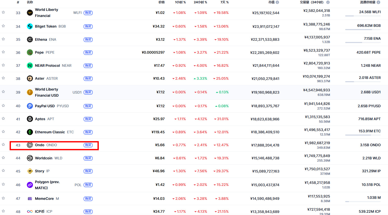 ONDO 是Ondo Finance所发行的 RWA 代币,