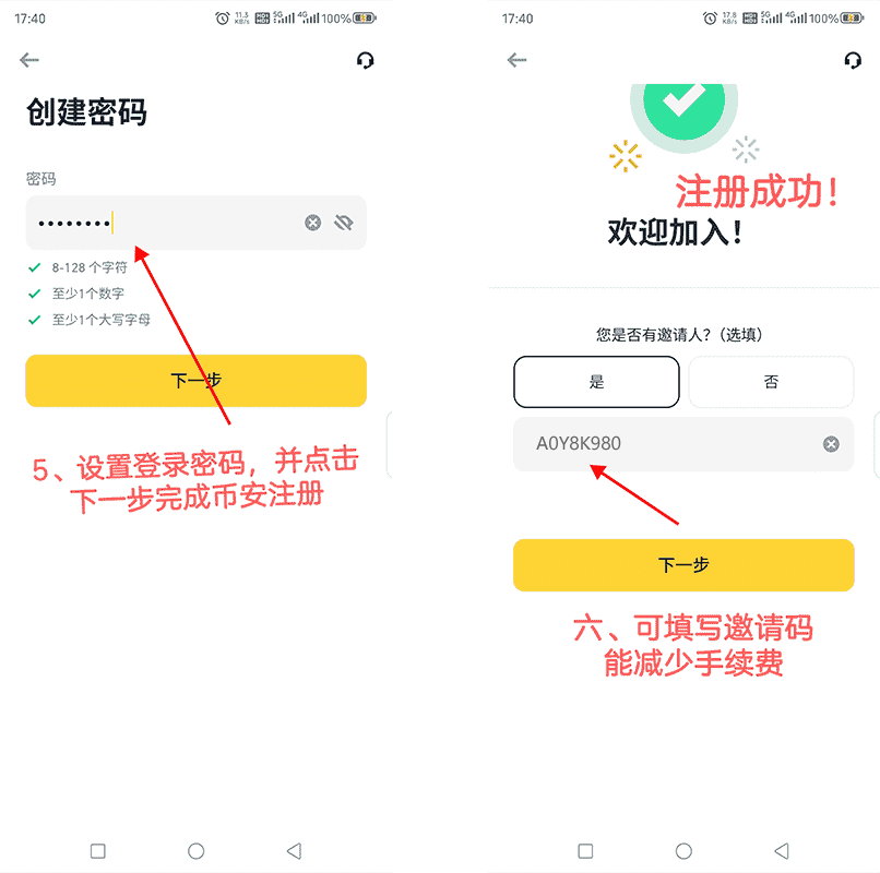 2、在注册完成后的下方可选择填入A0Y8K980此推荐码,在交易时可减少部分手续费。