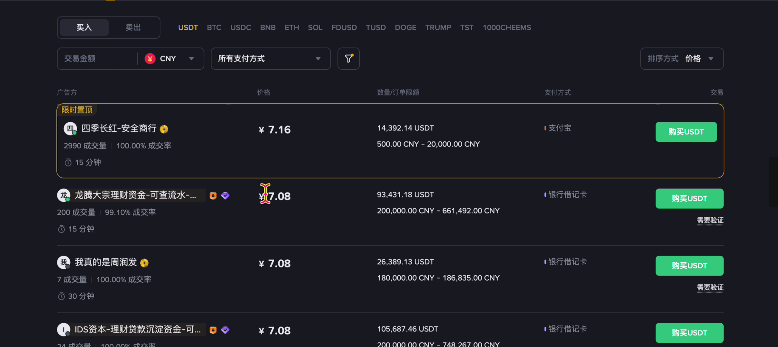 现在我的收款方式就已经添加好了,接下来我们就可以筛选商家来进行出售的交易了。
