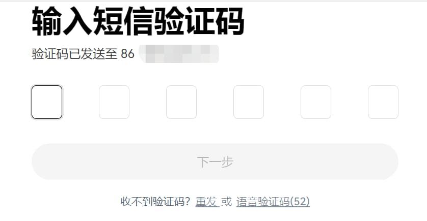 然后输入 6 位短信验证码,完成验证: