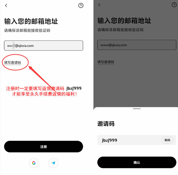 (注意:一定要填写邀请码填写jbzj999,才能享受永久手续费返佣的福利!否则没有福利会很可惜哦)