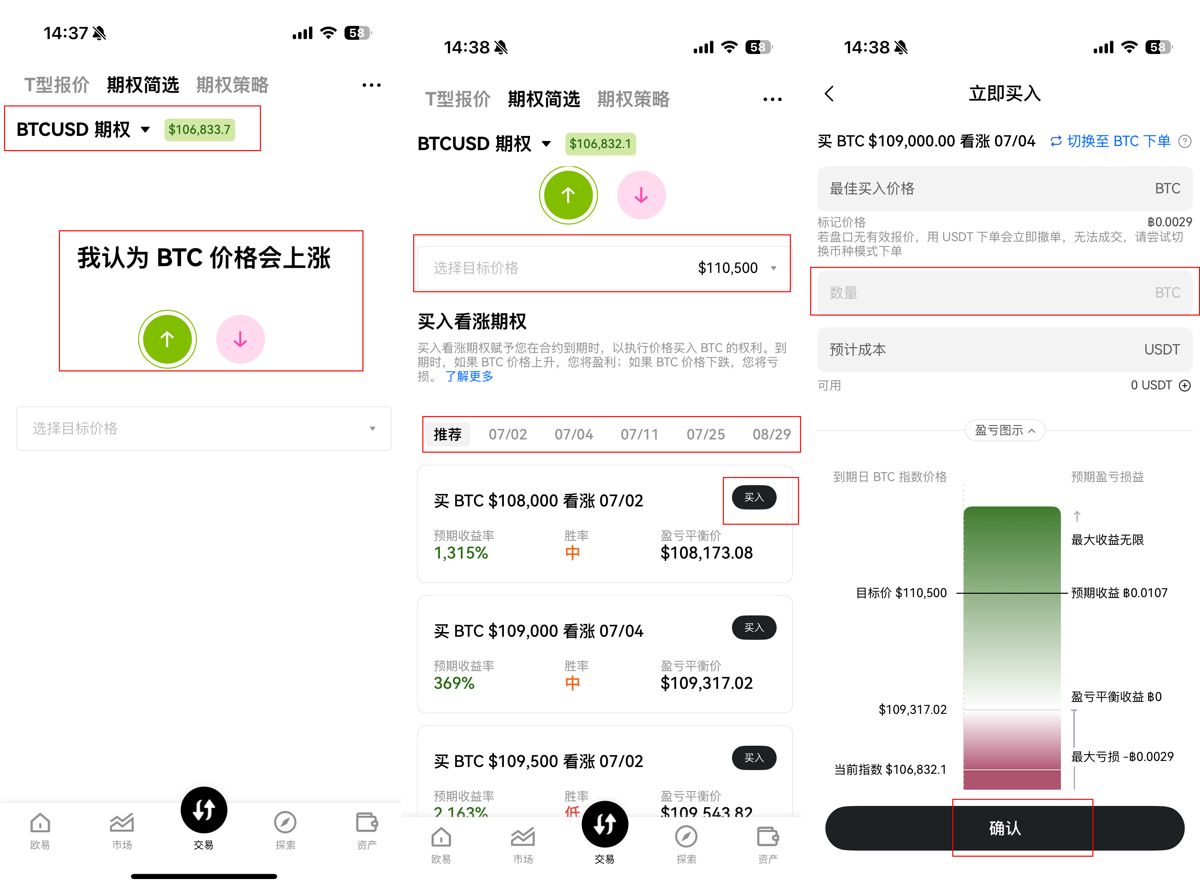 购买OKX期权的步骤流程: