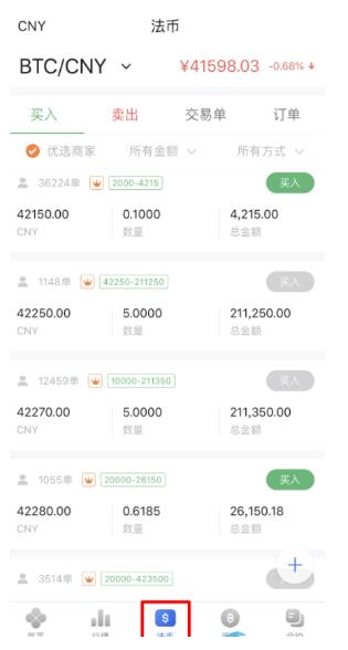 1.登录官网或APP后进入"法定货币"板块,选择对应币种交易对。