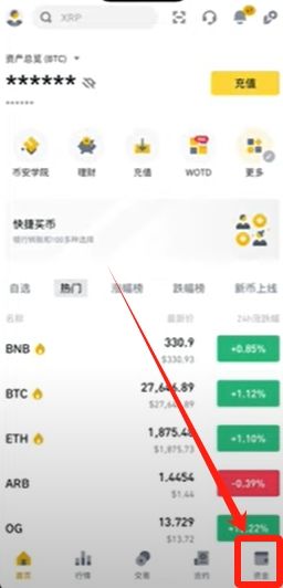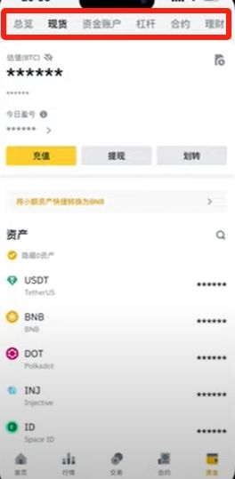 登录币安app后点击右下角【资金】进入管理界面。平台提供5个账户类型,其中现货账户与资金账户是充提币操作的主要对象。