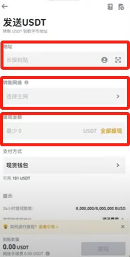 在现货账户页面选择【提钱】功能,选取USDT作为目标币种。系统将提示两种提现方式,务必选择区块链转账选项。