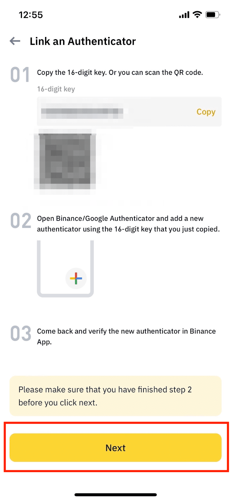 系统会显示一个二维码和16位设置密钥。这个密钥是账户恢复的关键凭证,务必妥善保管。打开币安验证器App后,可以选择扫描二维码或手动输入密钥完成绑定。