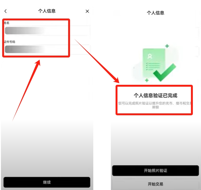 L1基础认证仅需填写真实姓名和证件号码,通过后即可开启基础交易功能。如需更高交易额度,需继续完成L2高级认证。