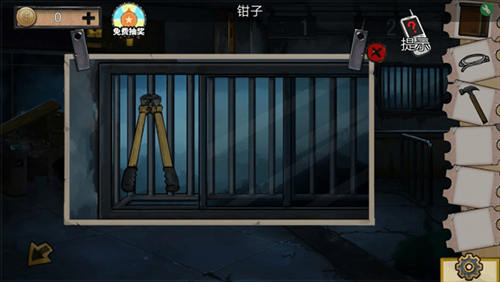 7、玩家把组合两边钳子的拿到后,用其打开铁栅栏,第二关通过。