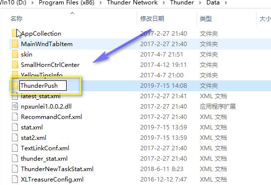 6、找到thunderpush文件夹将其删除