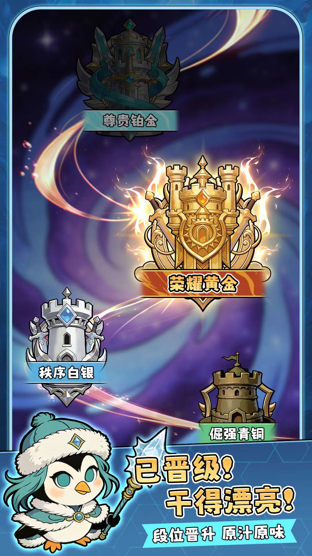段位系统采用阶梯式结构,包含青铜、白银、黄金、铂金四个层级,用于衡量玩家长期养成进度。技能按品质划分为绿色(普通)、蓝色(精良)、紫色(史诗)三类,其中肉鸽机制主要体现在关卡内随机出现的技能选择环节——并非单纯追求高阶紫色技能,而是需结合当前炮塔属性、小兵组合及流派倾向进行取舍,方能实现战力最大化。