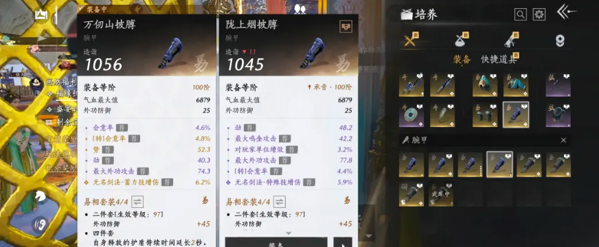比如无名差不多就是12条大外+9条劲+2精准+5势+6会意+3会心+3神力是PVE最优解,百业战的无名则是12条大外+8条大明金+2精准+5势+6会意+3会心+4神力最优解。在选择装备套件的时候,先规划一下自己的面板,按照自己的风格选择承音装备进行投喂。