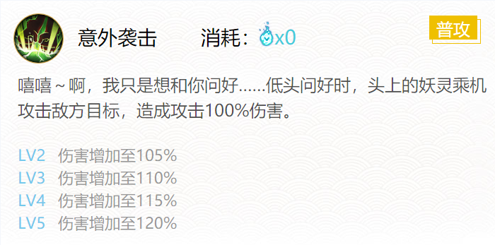技能一:意外袭击(0火)