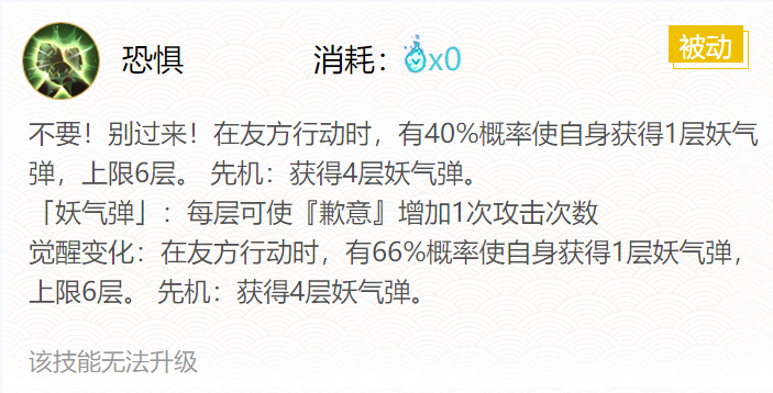 技能二:恐惧(0火)