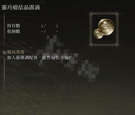 我们拿到灵药圣杯瓶的时候即可获得一个红结晶露滴。