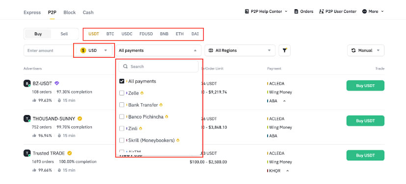 1. 通过一键买币功能进入购买页面