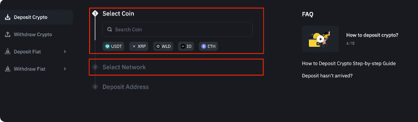 1. 选择对应币种并核对网络类型