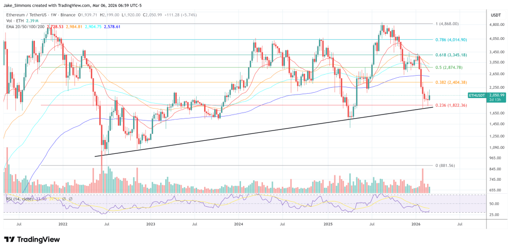 截至发稿,ETH报价2050美元。