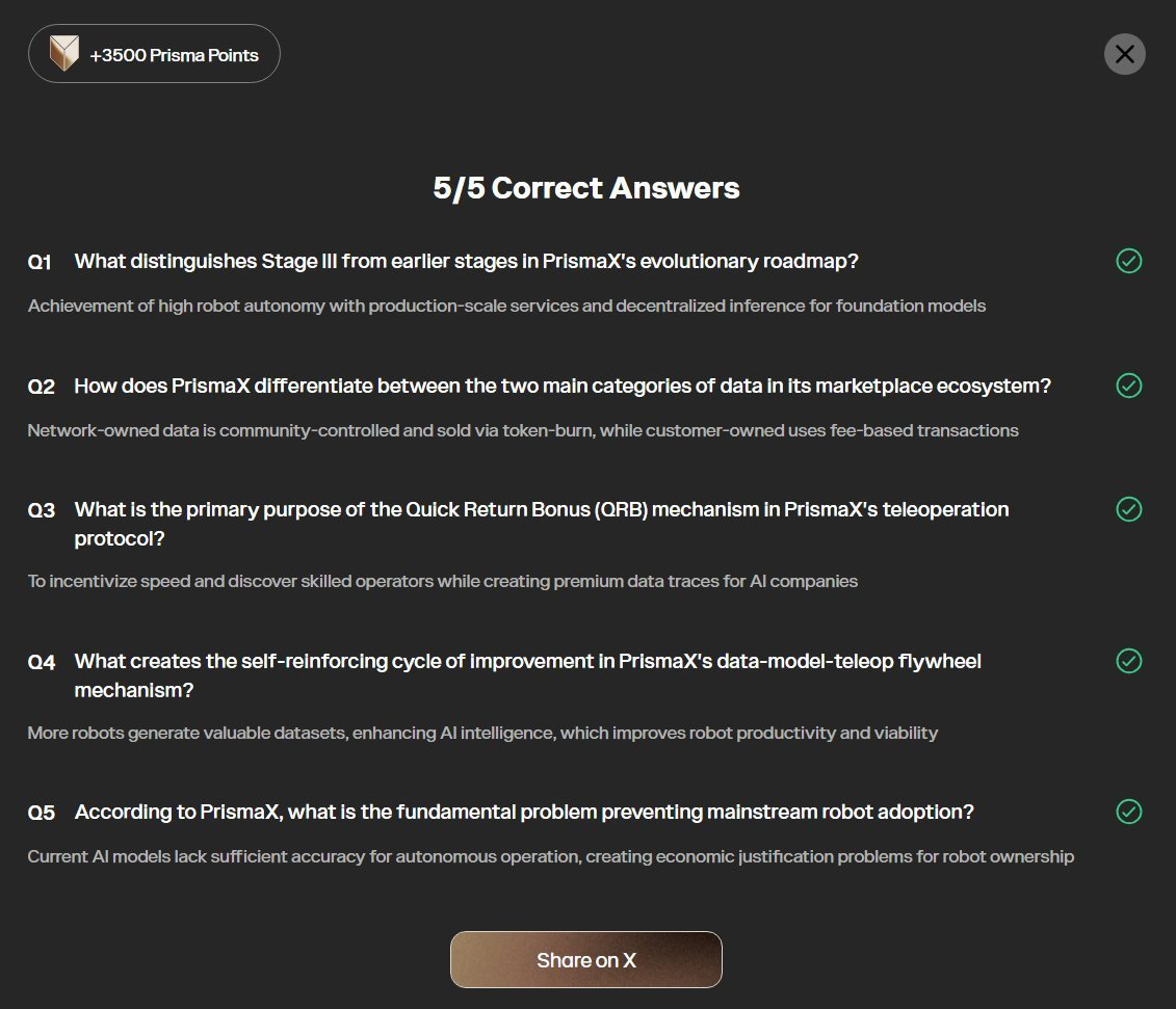 以上就是 PrismaX 参与教程,首次花 5 分钟时间就能获得 4510 分,背景和定位都不错,属于机器人赛道的潜力股,可以做下等个空投福报。