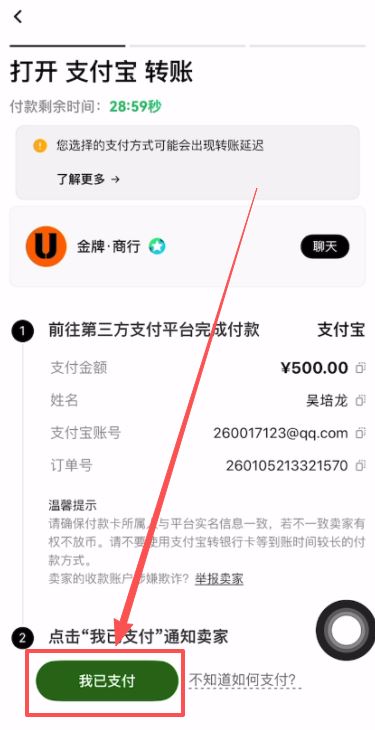 如果发现商家的账号是隐藏的,或者有特殊要求,可以在聊天框中单独询问商家。确认信息无误后,离开欧易App,打开你的支付宝或网银,按照商家要求的金额进行转账。