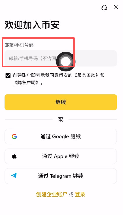 再点击下方的“创建币安账户”。