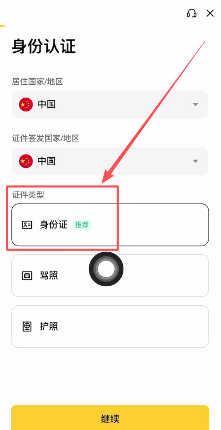然后需要我们去进行身份认证,你可以直接用身分证来进行认证。