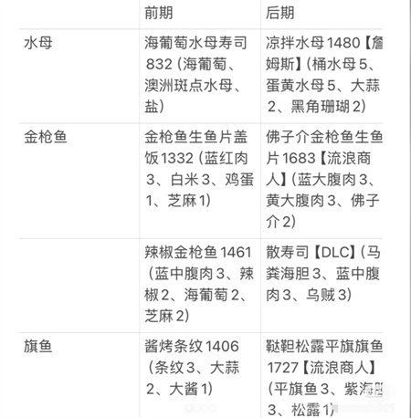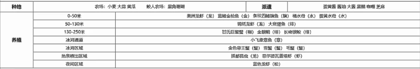 0-50:蓝金枪、条纹旗鱼、桶水母蛋黄水母、美洲龙虾、马粪海胆、河豚(前期)、扳机鱼(中期)