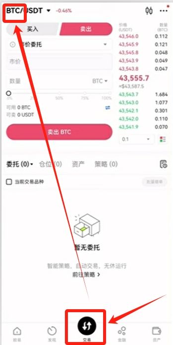 我们买币用的最多的还是交易。点击下方中间的【交易】,第一次看见交易页面,估计你是一脸懵的,这都是什么意思呢?我来给大家讲解一些重点的指标。首先是左上角的BTC,这个就是比特币。