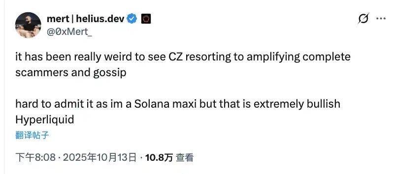 这场争论很快引发了站队。DeFi 老炮 Andre Cronje 站台 Binance,而 Solana 社区内核成员、Helius Labs CEO Mert 则选择支持 Hyperliquid。整个行业因此分 裂成两个阵营。