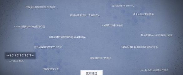 4、推理二:火灾时间8点,Austin.Jim.lsabelle在现场,火灾经过为布置,科学作品,发生火灾,展厅起火,消防车,被发现,隐藏的究竟是Austin发生了意外