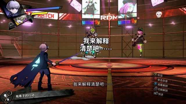 死斗环节应该说有设计相对复杂的系统:红光包含可反驳、蓝光包含可能获得线索、红色可以按B消除,配合上下左右,完成了一个轻度“音游”的体验,不过问题还是我之前说的:原本就简单的谜题被拆的太细碎,导致于几乎没有了“动脑”的快乐。