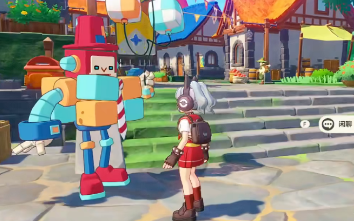 方方则定位为剧情向辅助型机械宠,虽基础战力不及圣剑骑士,但在推进后期主线任务时具有不可替代的引导作用。其建模由多个立方体模块组合而成,手持方形像素气球,整体风格鲜明。获取流程门槛较低,适合新手玩家:前往商业街街角与方方互动,每日接收一项材料交付任务,累计完成若干次后可解除其封印状态,随后前往祭坛执行解禁仪式,最终收服该宠。