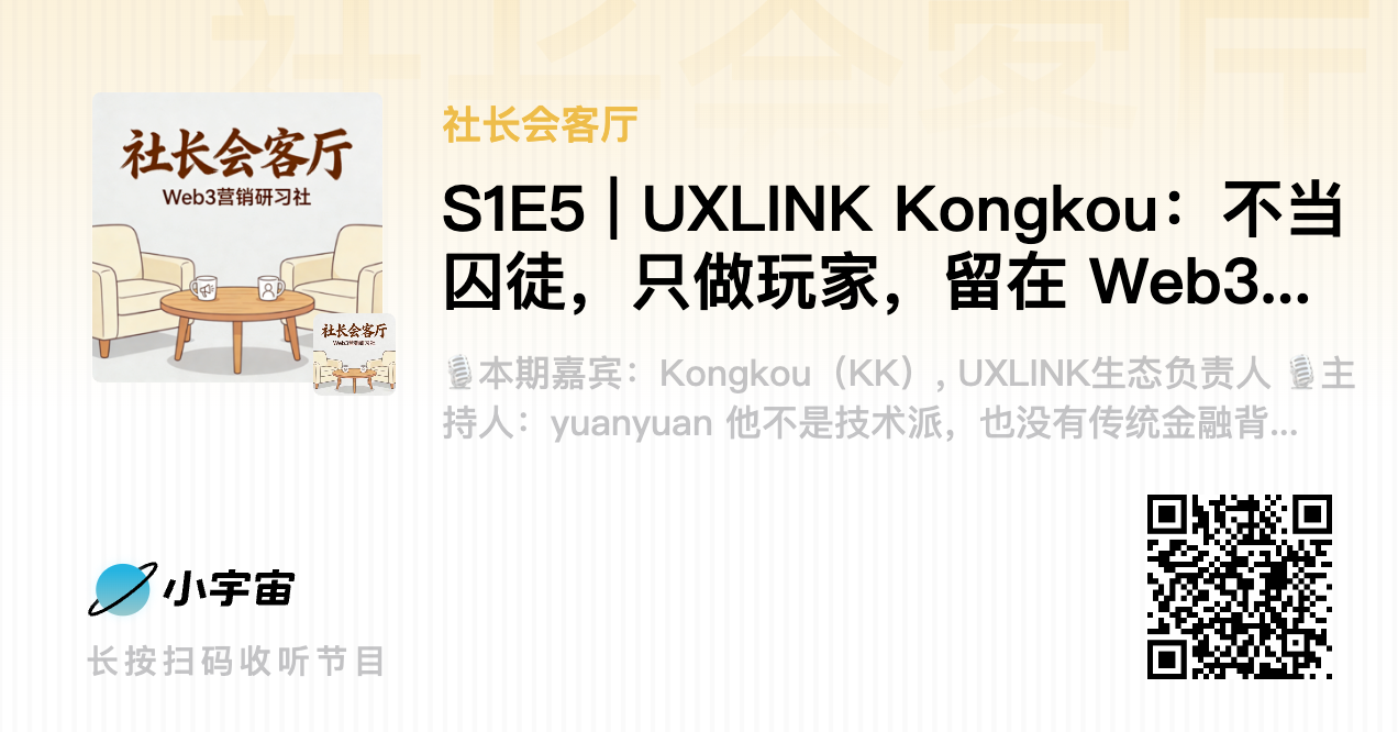 他不是技术派,也没有传统经济背景。学经济出身,从瑞典制造业供应链到大疆哈苏,再到 Web3 社区增长。他参与过百万级用户增长的活动、经历过项目数十亿市值的高峰,也经历过项目被盗、币价暴跌的至暗时刻。这本身,就是一种‘不当囚徒’的定力--在各种暴富与崩盘的叙事里,他没被行业‘格式化’,反而活成了一个自在的玩家。