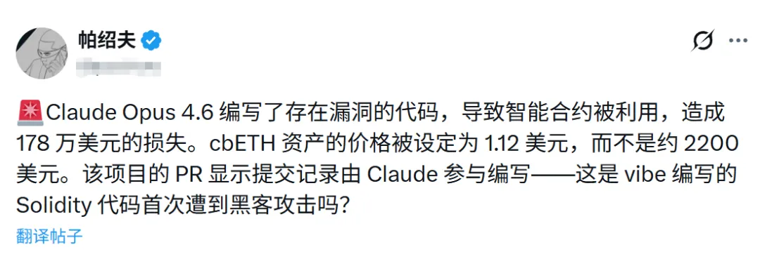 事件发酵后,舆论大部分都是“Claude写了致命漏洞”,但客观来看,把这178万美元得锅扣在AI头上,多少有点冤枉他了。