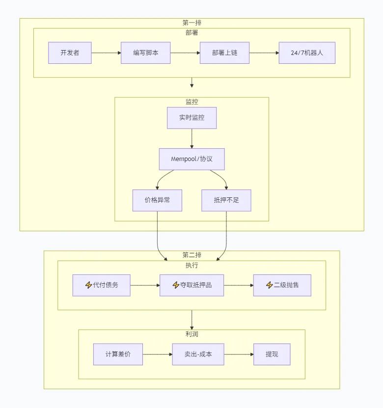 清算机器人并非凭空产生,它们是由真实的程序员或量化团队(即MEV搜索者)编写并部署在链上的自动化脚本。当系统因AI漏算一个乘号,将2400美元的资产按1块多美元的废铁价“合法贱卖”时,这些像狩猎者一样巡逻的机器人瞬间捕捉到了机会。