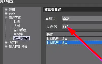 5、找到放大的自定义快捷键,就可以进行随意我编辑。